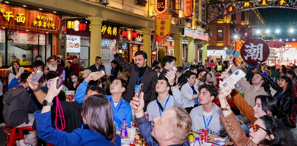 1月16日,“广东年味 世界共享”——请到广东过大年新春活动在汕头镇邦美食街启幕,30个国家和地区的百余名外籍达人齐聚。新华社发 支付无界、退税秒到 “科技年货”行天下 马年春节将至,深圳的年味里透着硬核科技感。华强北作为“中国电子第一街”,成为中外消费者“扫货”首选,AI眼镜、智能翻译器等前沿产品琳琅满目。 南亚客商汤姆在华强电子世界接连逛了多家商铺,购物袋越装越满。“充电宝、智能手表、无人机玩具,一站式就能买齐给家人的礼物。”他说。 近期,华强北以“向新策马·跨年潮GO季”为主题,联动35家专业市场布展,同步开展“广货行天下”促销活动。数据显示,这里日均客流75万人次左右,外籍客商日均超7000人次;核心商圈客流较活动前提升10%至15%,“科技年货”销量较平日增长约30%。 “科技年货”火爆背后,有“广货行天下”的影响力,也得益于深圳全链条的便利服务。机场、口岸建成5个综合服务中心,提供多元服务,多语种指南实时更新。“一部手机搞定所有消费!”一位刚落地的西班牙游客学会微信支付后连连称赞。 退税服务持续升级,支付宝、微信等第三方退付渠道上线,实现“即买即退”。在深圳前海一家免税店,来自法国的露西用手机“碰一下”就完成了退税。“不到一分钟就到账,中国的支付方式是最好的‘纪念品’。”她笑着说。