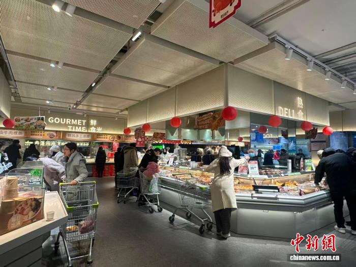 中新网郑州2月15日电(阚力 王佳宁)春节前夕,河南郑州各大商超内年货琳琅满目,热闹非凡,常住人口近亿的中部省份河南消费市场持续升温。 近几年,中原商超在消费市场频频出圈:胖东来等区域商超品牌已形成现象级IP,淘小胖、鲜风生活、华豫佰佳等一批本土商超品牌实现突围,山姆等国际大牌商场布局河南。 ![]() 图为郑州一知名商超。 王佳宁 摄