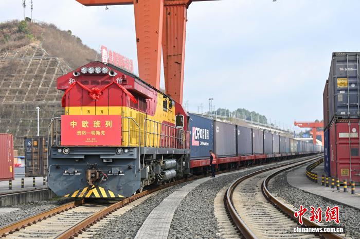 【欧洲专线】贵州开行2026年首趟中欧班列 中新社贵阳2月15日电 (记者 瞿宏伦)2026年贵州地区首趟满载“贵州造”吉利汽车及配套零部件的中欧班列(以下简称:中欧班列)15日从贵州贵阳国际陆港都拉营站顺利开行。 ![]() 2月15日,一列满载“贵州造”吉利汽车及配套零部件的中欧班列在贵阳国际陆港都拉营站整装待发。杨亚文 摄