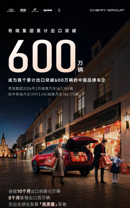 从新能源汽车品牌来看,吉利旗下高端新能源汽车品牌极氪,2月销量达2.39万辆,同比增长70%。 据极氪方面介绍,极氪夯实豪华新能源SUV(运动型多用途汽车)市场领先地位,极氪9X三个月蝉联50万元级大型SUV销冠,累计交付量超3万辆。 ![]() 新势力月度销冠再易主 蔚来再成“增速王” 2月,零跑以2.81万辆的交付量,重夺造车新势力月度销冠。 零跑创始人、董事长兼CEO朱江明表示:“刚刚过去的2月,零跑交付继续稳居(造车)新势力第一梯队。” 此前,零跑连续多次成为造车新势力月度销冠,但小米在1月打破零跑“神话”,首次坐上造车新势力月度销冠宝座。 步入2月,小米的交付量超2万辆,被零跑反超且拉开差距。对此,雷军发布微博称:“(小米)目前在售车辆主要是YU7。” ![]() YU7是小米在2025年下半年推出的首款SUV车型。一位车企人士表示,在新能源汽车时代,特斯拉Model Y等SUV车型成为销售主流车型。 小米在轿车市场也有不俗战绩。此前小米仅销售纯电轿车车型SU7,但月度交付量长期超1万辆。2024年4月至2026年2月,第一代SU7的累计交付量超38.1万辆。 雷军多次发布微博称,小米正在紧锣密鼓地准备新一代SU7。小米此前透露,新一代SU7预计在2026年4月上市。 这意味着,造车新势力月度销冠变数颇多。零跑要坐稳造车新势力销冠的宝座,仍有较多挑战。 2月,蔚来再次成为头部造车新势力中的“增速王”,交付量同比增长57.65%至2.08万辆。 分析来看,蔚来2月销量大增,主要受益于爆款车型全新ES8。全新ES8是一款全场景科技旗舰SUV,已经连续3个月的销量超1万辆。 2月27日,第7万辆全新ES8完成交付,历时仅160天。蔚来方面称:“纯电大三排SUV的黄金时代已经到来。” 多家车企争夺海外市场增量 国际化成为必答题 有别于国内市场受春节假期影响,多家车企的海外销量大增。 以奇瑞集团为例,其2月出口量达12.49万辆,同比增长41.5%,连续10个月的月度出口量超10万辆,成为首家累计出口量超600万辆的中国车企。 ![]() 海外市场一直是奇瑞集团的优势领域。从2025年6月累计出口量超500万辆,到2026年2月累计出口量超600万辆,奇瑞集团仅用时8个月。 近期,众多车企为了应对国内市场的激烈竞争,纷纷加码海外市场,如今看来收获颇丰。 2月,比亚迪、上汽、吉利、长城的海外市场销量,分别为10.06万辆、9.90万辆、6.09万辆、4.27万辆,同比均实现大幅度增长。 吉利的收获最为明显,其2月海外销量同比增长144.30%。2月24日,吉利汽车集团CEO淦家阅发布新春寄语表示:“未来,海外业务将是吉利持续发展的关键引擎。” 按照规划,吉利将通过产品输出、品牌出海、资源整合与技术赋能,在重点市场建立本地化的体系力,最终实现从“中国制造”到“全球品牌”的跨越。 淦家阅表示,吉利要从“国际贸易”向“产品导向”转型,全面推进产品适应性与本地化开发,打造全球性的标杆产品。 多家中国车企涌向海外市场,部分车企人士提出高质量出海。奇瑞集团方面称,公司在出海规模持续扩大的同时,进一步加快进入欧洲等高法规市场,呈现高端市场与新能源双线突破的特征。 ![]() 想炒股,先开户!选东方财富证券,行情交易一个APP搞定>> (文章来源:中国基金报) |
