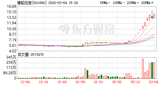 K 线图 特色数据 资金流向 公告 个股日历 核心题材 ![]() 最新价:13.34 涨跌额:1.21 涨跌幅:9.98% 成交量:128万手 成交额:16.8亿 换手率:8.39% 市盈率:53.05 总市值:204亿 查询该股行情 实时资金流向 深度数据揭秘 进入豫能控股吧 豫能控股资金流 全新妙想投研助理,立即体验 如未来公司股票价格进一步上涨,公司可能向深圳证券交易所申请停牌核查。 豫能控股(001896)3月1日晚间公告称,公司股票价格波动幅度严重偏离市场走势、已经严重脱离公司基本面,属于股票交易严重异常波动的情形。 ![]() 公告称,如未来公司股票价格进一步上涨,公司可能向深圳证券交易所申请停牌核查,投资者参与交易可能面临较大风险。敬请广大投资者务必充分了解二级市场交易风险,切实提高风险意识,理性投资,注意投资风险。 股价大涨主要源于该公司正在进行的收购事项:公司正在筹划参股投资控股股东河南投资集团有限公司下属控股企业先天算力(河南)科技有限公司(下称“先天算力”),并联合河南投资集团以先天算力为收购主体,收购郑州合盈数据有限责任公司(下称“郑州合盈”)控股权。据悉,郑州合盈主要从事第三方超大规模数据中心业务,下属数据中心主要分布于河北省张家口市怀来县、廊坊市,位于京津冀节点,定位服务首都及周边地区实时算力需求。 豫能控股最新公告称,截至本公告披露日,公司本次参股投资尚处于筹划阶段,先天算力对标的公司收购尚未完成。本次公司仅参股投资先天算力,不会合并先天算力财务报表,不会参与先天算力具体运营。目前公司暂无未来36个月内收购相关标的的计划,上述交易对公司的影响存在不确定性。