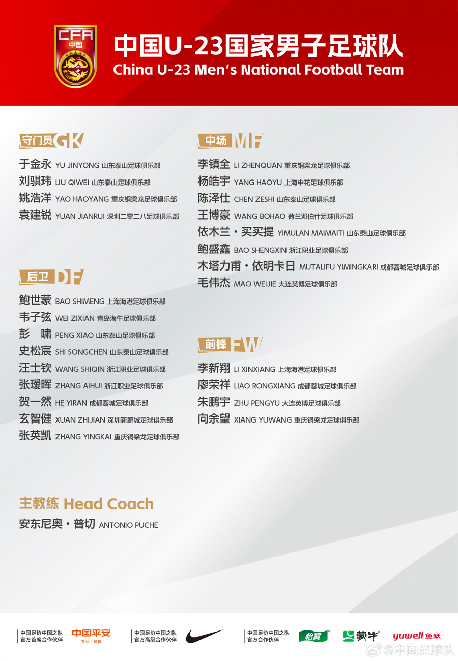 3月20日上午,中国足协公布了最新一期中国男足集训名单。从人员构成来看,虽然总共有多达九名参加了U23亚洲杯的球员入选,但其中绝大部分人其实都曾入选过国足,唯一的新面孔是上海海港队的右后卫杨希。从这个角度来看,国足少帅邵佳一在球队年轻化改造方面并没有迈开过大的步伐,面对即将到来的两场热身赛,他依然选择以稳为主。 九名入选的23岁以下球员分别是杨希、徐彬、蒯纪闻、刘诚宇、王钰栋、吾米提江·玉苏普、胡荷韬、刘浩帆和拜合拉木,其中前五人为21岁以下球员。按照原本计划,帮助U23国足拿到亚洲杯亚军的门将李昊原本也应入选国足,但由于在联赛中受伤,他最终未能入选。胡荷韬、拜合拉木、王钰栋和刘诚宇都已经是国足常客,吾米提江、蒯纪闻、刘浩帆和徐彬也曾入选过国足集训名单。