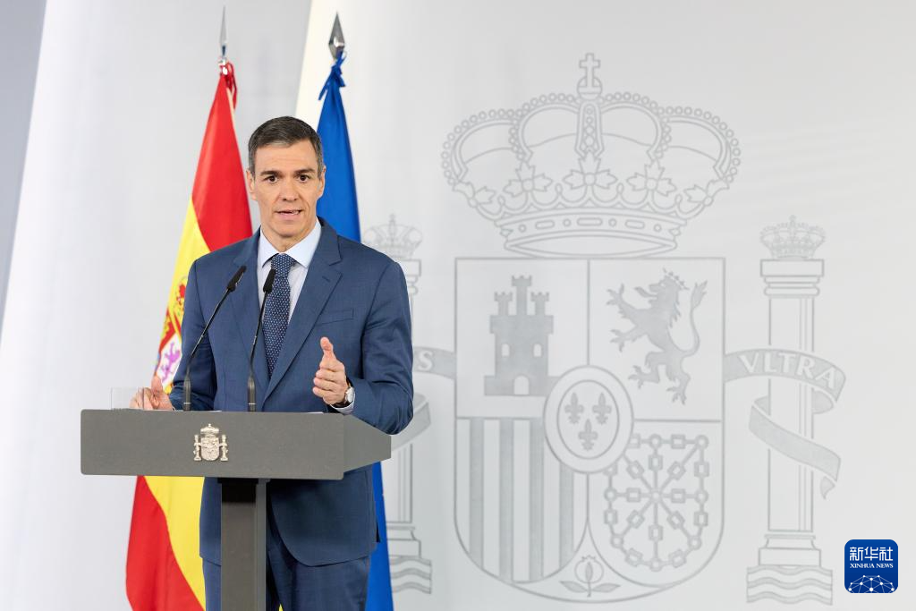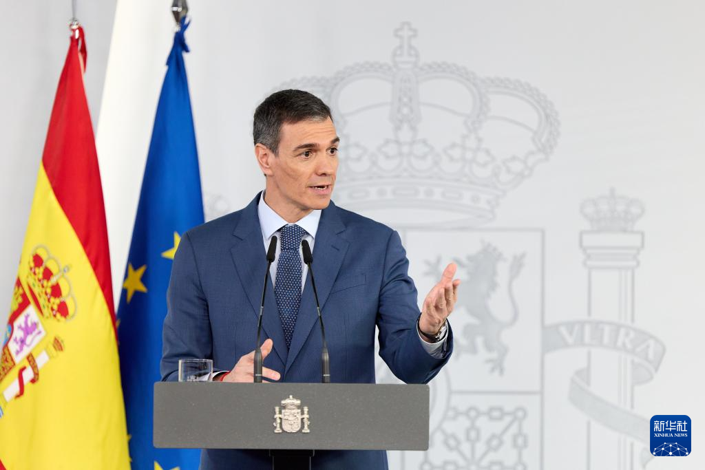 3月20日,西班牙首相佩德罗·桑切斯在西班牙马德里一场新闻发布会上讲话。新华社记者 孟鼎博 摄